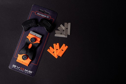 Skrobak z tworzywa sztucznego precyzyjnie usuwa naklejki, taśmy oraz kleje. Jest całkowicie bezpieczny i nie rysuje szkła. Ergonomiczny uchwyt Soft-Touch zapewnia antypoślizgowy chwyt i umożliwia czyszczenie bez zarysowań. Aby zapewnić bezpieczeństwo, ostrze można bezpiecznie schować w obudowie po zakończeniu pracy.
