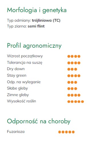 Typ odmiany: trójliniowa (TC) • Typ ziarna: semi flint