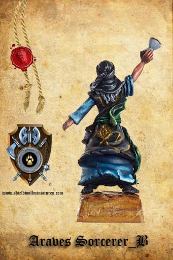 This product contains one fine detailed resin Araves Sorcerer B miniature. Model supplied with plastic 20mm square base.