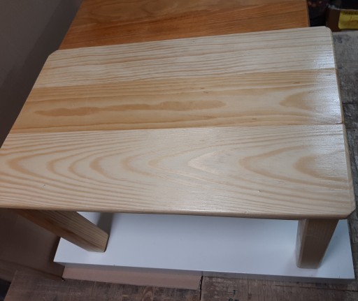 Taboret jest solidnie wykonany. Malowany lakierem bezbarwnym i bejcą.