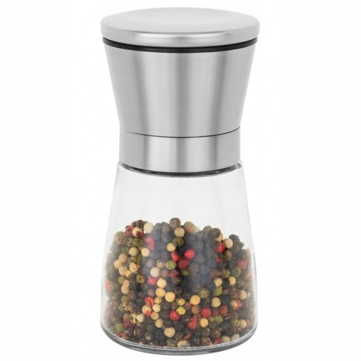 Młynek do mielenia przypraw marki Galicja.Wykonany został ze stali nierdzewnej oraz z przezroczystej ścianki ze szkła, dzięki której możemy kontrolować poziom zawartości naczynia. Młynek posiada ceramiczny mechanizm mielący, można w nim regulować stopień mielenia soli, pieprzu bądź innych przypraw.