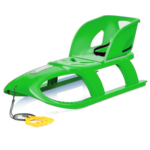Wysokiej jakości sanki wykonane w polskiej fabryce. Metalowe okucia sprawiają, że produkt posiada odpowiedni poślizg. Sanki posiadają wygodną plastikową rączkę na kolorowej linie.