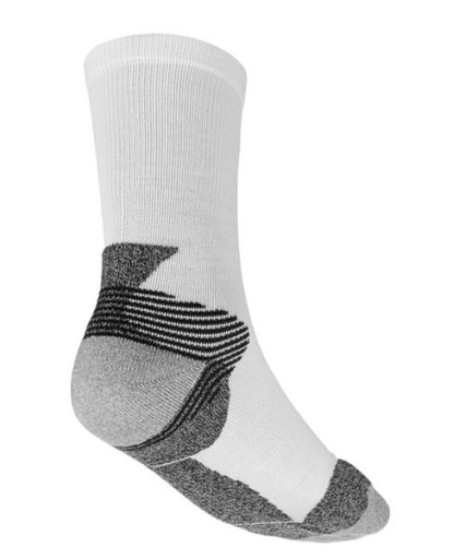 Lekki, oddychający materiał zapewnia dobre odprowadzanie wilgoci. Anatomicznie ukształtowany, ergonomiczny krój zapewnia odpowiednie dopasowanie. Strategicznie rozmieszczone kanaliki wentylujące zapobiegają nadmiernemu przegrzewaniu się stóp co minimalizuje ryzyko występowania odparzeń. Płaskie szwy oraz starannie wykonane zakończenia łączeń gwarantują komfort i ochronę przed powstawaniem otarć i ucisków. Wzmocnienia podeszwy stopy amortyzują uderzenia o podłoże oraz chronią wrażliwe części stopy przed urazami. Elastyczne ściągacze pozwalają na swobodny przepływ krwi, dzięki czemu zmniejsza się uczucie zmęczenia i ciężkości.