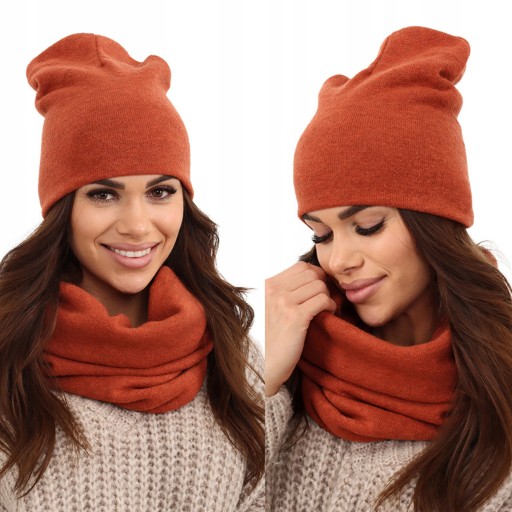 KOMPLET DAMSKI CZAPKA KOMIN POLSKI RUDY 2468