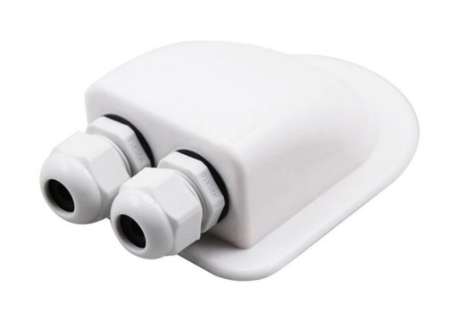 Przejście hermetyczne podwójne na kabel solarny. Łatwy montaż za pomocą kleju SIKAFLEX 291i. Przejście jest wodoszczelne i zapewnia bezpieczny montaż kabla. Idealne do montażu na łodzi lub na dachu kampera.