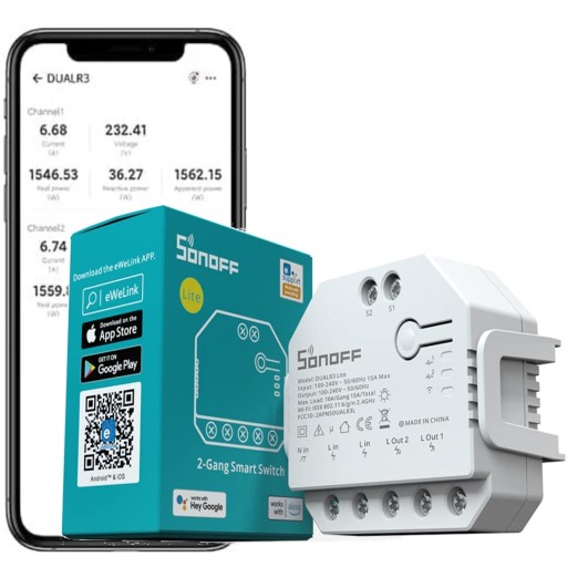 Wygodnie kontroluj oświetlenie lub automatyczne rolety. Inteligentny przełącznik Sonoff Dual R3 Lite umożliwia 2-kierunkowe sterowanie wybranymi urządzeniami i pozwala tworzyć harmonogramy pracy za pomocą aplikacji.