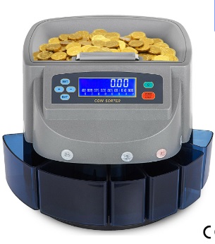 Jak to działa? Wrzucasz naraz różne monety do maszyny, naciskasz start- maszyna posegreguje nominały do odpowiednich pojemników wskazując poszczególne ilości oraz sume.