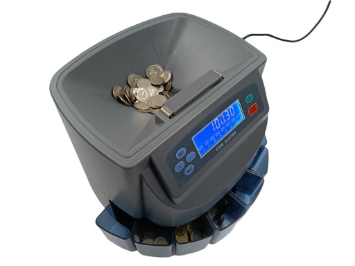 Sortuje i liczy bilon (PLN) o 8 nominałach (bez 1 gr).