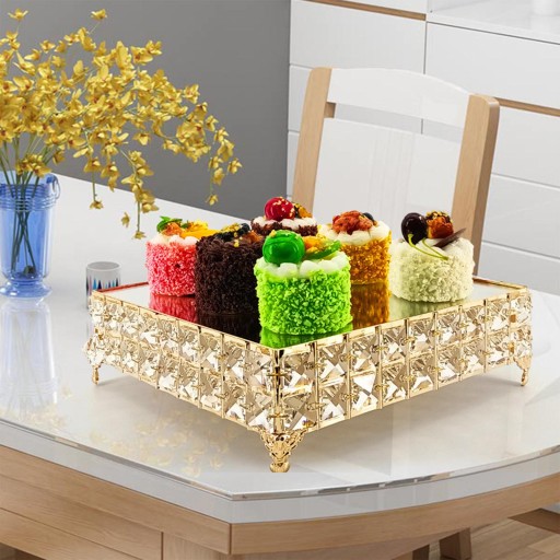 Materiał: Stojak na ciasto wykonany z metalu i kryształu, trwały i lekki, prosty i elegancki, dający poczucie luksusu.