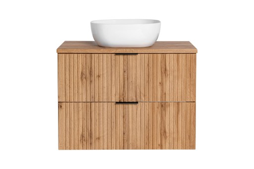 - Szafka z blatem pod umywalkę w rozmiarze 80 cm w kolorze dąb wotan z umywalką