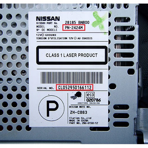 Numer seryjny odczytywany jest z naklejki na obudowie radia, potrzebne dane zaznaczono na zdjęciu poniżej (zaznaczono na czerwono), w celu uzyskania kodu należy przesłać dane radia w "wiadomości do sprzedającego" lub wysłać zdjęcie naklejki na radiu. Możliwe jest też uzyskanie kodu na podstawie danych z ekranu radia po 3 krotnie błędnie wprowadzonym kodzie, jednak czasami kod uzyskany po tych danych jest błędny, w takim przypadku konieczne jest przesłanie zdjęcia naklejki na radiu.