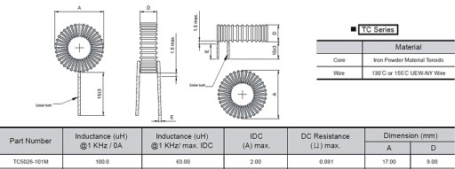[20 шт.] TC5026-101K 100uH 2A Тороидальная катушка