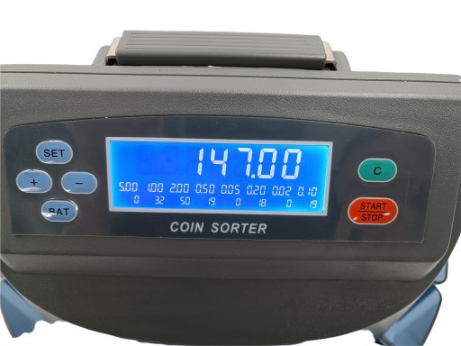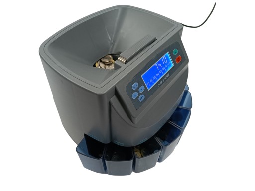 Urządzenie sortuje i liczy bilon o różnych nominałach,Podgląd liczonych monet w czasie rzeczywistym.