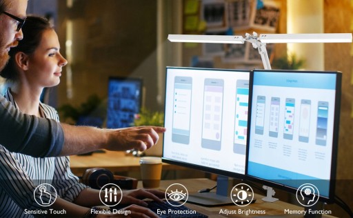 - Konstrukcja dbająca o oczy-każdy pasek świetlny umożliwia obrót o 360 °, regulowany w celu rozwiązania problemów, takich jak odbite odblaski na ekranie lub w oczach.