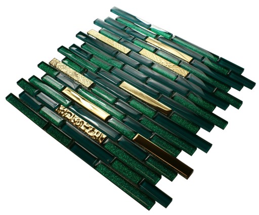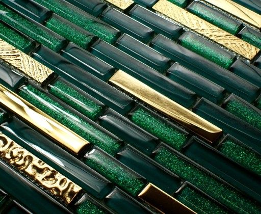 Mozaika szklana seledynowa z delikatnie połyskującego brokatem urozmaicona niezwykle mieniącym metalicznym złpotem