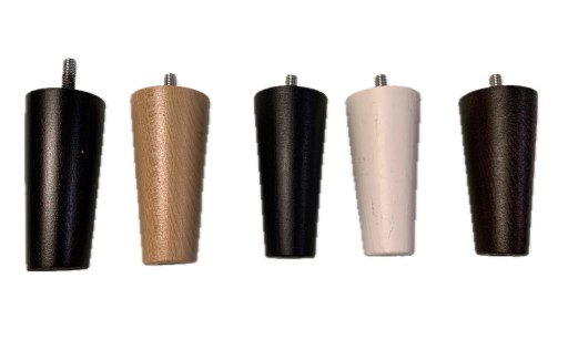 - NÓŻKI DREWNIANE (OD LEWEJ WENGE, BUK, CZARNE, BIAŁE, BRĄZOWE)