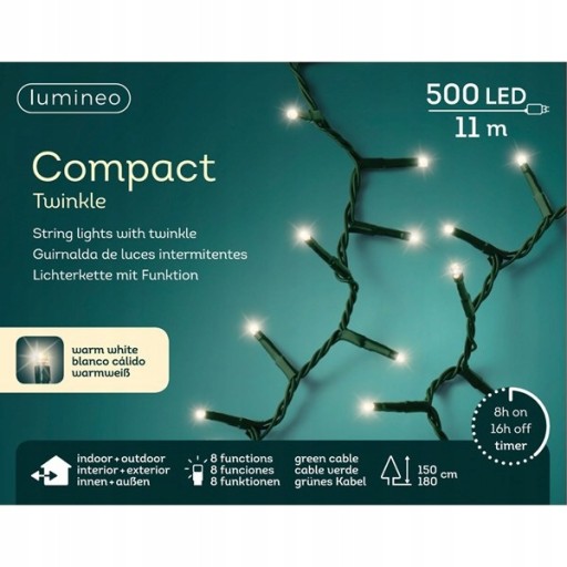500 светодиодных ламп с программатором, теплый белый, 11 м