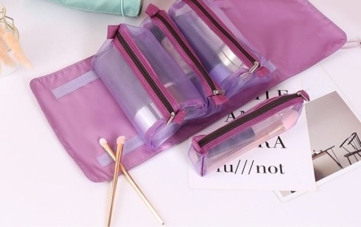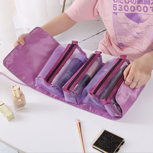 Kosmetyczka została wyposażona 4 niezależne przegródki w dwóch rozmiarach. Wszystkie kieszonki są przypinane na rzep, dzięki czemu każda może być używana jako oddzielna kosmetyczka. Możemy łatwo i szybko odpiąć i zabrać ze sobą tylko wybraną przegródkę.