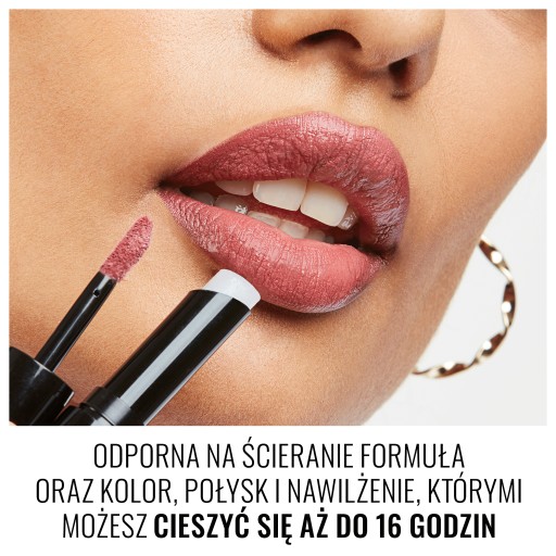 - Odporna na ścieranie formuła oraz kolor, połysk i nawilżenie, którymi możesz cieszyć się aż do 16 godzin.
