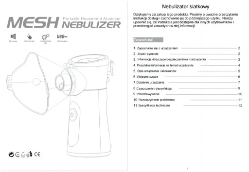Lista akcesoriów: jednostka główna * 1, maska dla dorosłych * 1, maska dla dzieci * 1, dysza * 1, torba do przechowywania * 1, kabel ładujący TYPE-C * 1, instrukcja w języku angielskim * 1