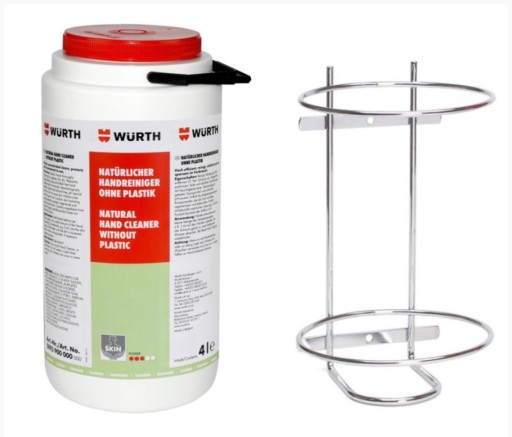 Do montażu ściennego 4,5-litrowego pojemnika na środek do czyszczenia rąk, „biały środek do czyszczenia rąk nie zawierający rozpuszczalników” (art. 0893 942 2); „czerwone żelowe mydło z naturalnymi mikrogranulkami” (art. 0893 900 045) i „żółte mydło żelowe z naturalnymi mikrogranulkami” (art. 0893 934 11).