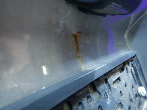 Opis: (2,4D 92KW MAX) FURTKI, szare, przemalowane z białych, wgniecenia, zarysowania, ogniska korozji. klamka wewnętrzna, ogranicznik, zamek, -jakość B && FORD TRANSIT VI 00-06 DRZWI TYŁ TYLNE LEWE