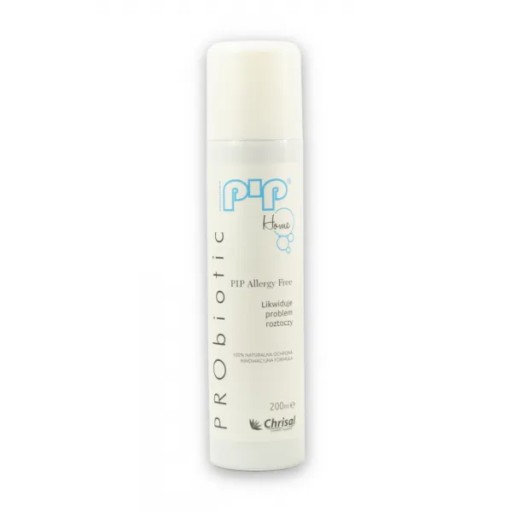 PIP Allergy Free jest ekologicznym aerozolem z probiotykami do wszelkiego rodzaju tekstyliów (łóżko, pościel, tapicerka, meble tapicerowane, dywany, zasłony). Skutecznie likwiduje problem alergii na roztocze kurzu domowego, usuwa alergeny, redukuje patogeny.