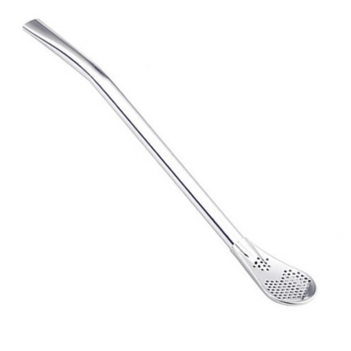 Prosta bombilla ze stali nierdzewnej z nieodkręcanym filtrem o kształcie łyżeczki posiadającym sitko w postaci drobnych dziurek zapewniających odpowiednią filtrację.