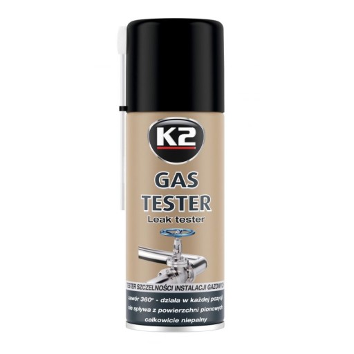 K2 GAS TESTER – profesjonalny tester szczelności gazu, służący do szybkiego, łatwego i bezpiecznego lokalizowania nieszczelności wszelkich instalacji ciśnieniowych. Pozwala na precyzyjne zlokalizowanie źródła wycieku. Polecany zwłaszcza do sprawdzania samochodowych instalacji LPG, instalacji pneumatycznych oraz grzewczych.