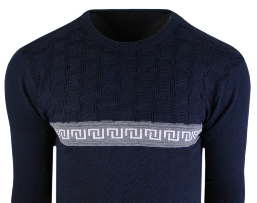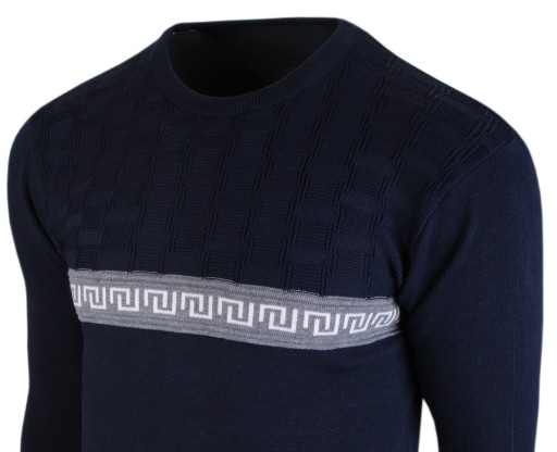 Sweter męski z kolekcji na rok 2022, dzięki zastosowanym materiałom doskonale dopasowuje się do sylwetki ,jest rozciągliwy dzięki czemu może go ubrać osoba szczupła jak i pan z brzuszkiem, kolorystyka i wzór tworzą niepowtarzalną całość.