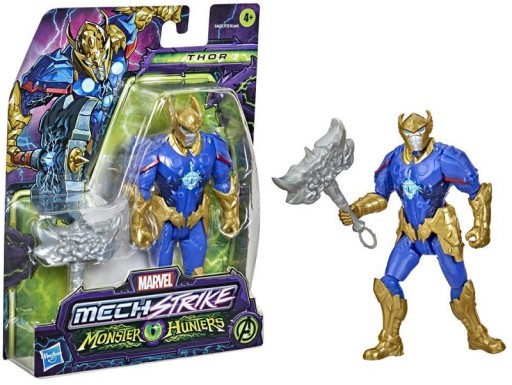Tony Stark i Doktor Strange wykorzystują naukę i magię, aby ulepszyć zbroję Avengersów, aby mogli walczyć z Doktorem Doomem i jego potwornymi złoczyńcami! Dzieci w wieku od 4 lat mogą sobie wyobrazić, jak ruszają w akcję i przygodę wielkości potwora dzięki figurkom akcji Marvel Avengers Mech Strike Monster Hunters! Zainspirowane uniwersum Marvela, te 6-calowe zabawki Monster Hunters mają inspirowany klasyką design i detale z elementami przypominającymi potwory. Chłopcy i dziewczęta pokochają udawanie, że walczą z potwornymi wersjami złoczyńców Marvela za pomocą gotowych do walki, potwornych wersji ulubionych superbohaterów Marvela! Poluj na supermocne potwory! Ta 15-centymetrowa figurka Avengers Mech Strike Monster Hunters jest szczegółowa, aby wyglądać jak postać Thora z uniwersum Marvela, ma wygląd i szczegóły przypominające potwory oraz wiele punktów artykulacji, które zapewniają zabawę.