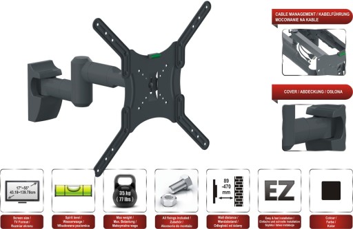- kompatybilny z TV od 17" do 55" (cali), udźwig do 35 kg,