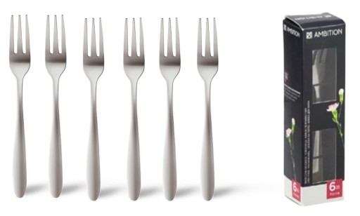 Komplet sześciu widelczyków do ciasta wykonanych z wysokiej jakości polerowanej stali nierdzewnej. Widelczyki pięknie prezentują . Widelczyki utrzymane w nowoczesnym stylu, będą pięknym uzupełnieniem zastawy i nadadzą eleganckiego szyku.