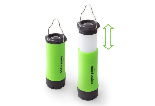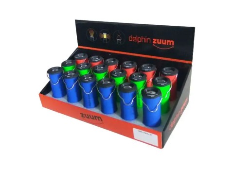 Podręczna latarka -lampka, która stanie się niezbędna podczas każdego wypadu nad wodę. Dzięki małym rozmiarom Delphin ZUUM jest bardzo poręczna a jej wielofunkcyjność sprawi, że stanie się niezastąpionym towarzyszem w warunkach słabego oświetlenia. Można jej używać jak klasycznej latarki, z wiązką światła świecącą prosto z obracającej się głowicy, a po przekręceniu górnej części i wysunięciu wewnętrznej, również jako lampki wolnostojącej lub wiszącej (dzięki wbudowanemu haczykowi). Ale to nie koniec jej możliwości. Lampka LED ma trzy tryby świecenia: światło jasne, światło przyciemnione i stroboskop. Wielofunkcyjna lampka ZUMM od firmy Delphin może zmieniać się z klasycznej podręcznej latarki w oświetlenie wiszące, oświetlenie namiotu, światło pozycyjne.. Lampka ZUUM jest wykonana z trwałego tworzywa w trzech kolorach do wyboru: zielona, pomarańczowa i niebieska.