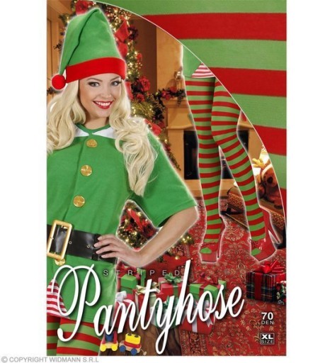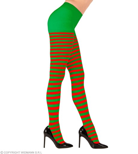Rajstopy w zielono-czerwone paski.Wykonane z wysokiej jakości nylonu (98%). Rajstopy są elastyczne, 70 den. Rajstopy mogą służyć jako samodzielny gadżet bądź jako uzupełnienie stroju.