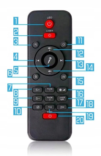 ➡️ Paleta kolorów - niebieski, czerwony, zielony, biały, można wyświetlać jeden bądź dwa kolory na raz + laser
