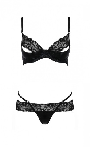 Klasyka w odświeżonej formie - czyli komplet dla każdej kobiety. Czarny biustonosz i stringi, które można założyć na poczatek dnia, a które nie zawiodą nas wieczorem - wciąż wywołując piorunujące, seksowne wrażenie na ukochanym, dzięki wyjątkowym koronkowym wstawkom.