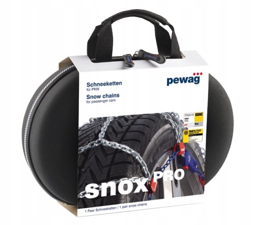 Łańcuchy pewag snox pro łączą w sobie wszystkie najlepsze cechy łańcuchów śniegowych z niepowtarzalnym komfortem zakładania oraz najbardziej komfortowym prowadzeniem pojazdu. Optymalną trakcję zapewniają kwadratowe ogniwa 3.2 mm, które w maksymalnym stopniu oplatają opony. Bezpieczeństwo dla aluminiowych felg gwarantuje system plastikowych klipów.