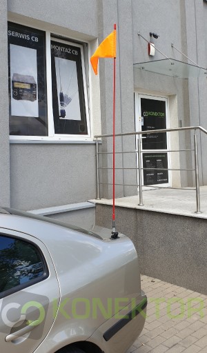 Do instalacji flagi potrzebna jest głowica z gwintem 3/8 cala (np. FireStik ST-4). Głowicę można zamontować w karoserii, zderzaku, uchwycie własnego wykonania itd.