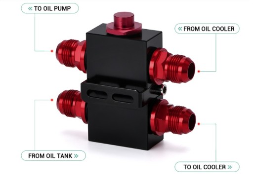 Podstawka pod filtr oleju z termostatem, pozwala na montaż chłodnicy oleju, dzięki termostatu unikniesz problemów z dogrzewaniem się oleju. Wykonana z najwyższej jakości aluminium na maszynie CNC co gwarantuje dokładność jej wykonania. Zapewnia optymalną temperaturę.