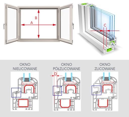- Rodzaj okna: jednopłaszczyznowe (licowane), dwupłaszczyznowe (cofnięte)