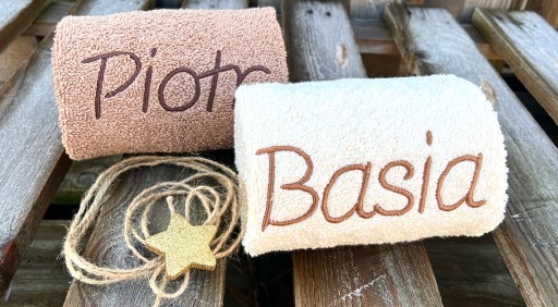 - duży ręcznik łazienkowy z Twoim haftem imienia lub napisu złożonego z 2 wyrazów (np. Mama Magda, Babcia Gosia).
