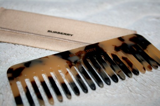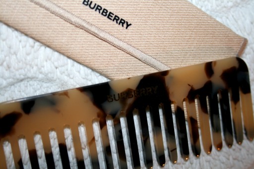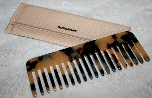 Logo BURBERRY wytłoczone na grzebieniu oraz na pokrowcu.