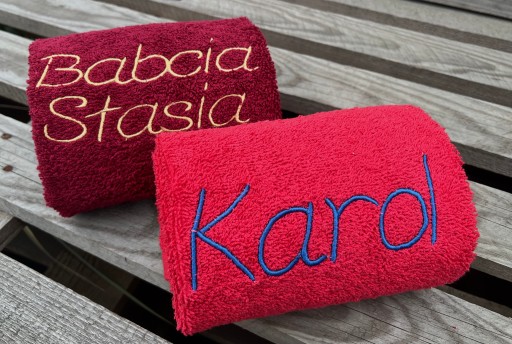 - duży ręcznik łazienkowy z Twoim haftem imienia lub napisu złożonego z 2 wyrazów (np. Mama Magda, Babcia Gosia).