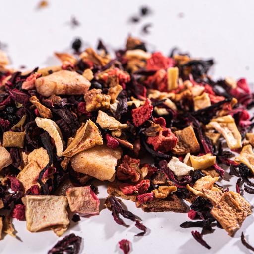 Hibiskus, czarny bez, jabłko, skórka róży, banan, gruszka, malina liofilizat, truskawka liofilizat
