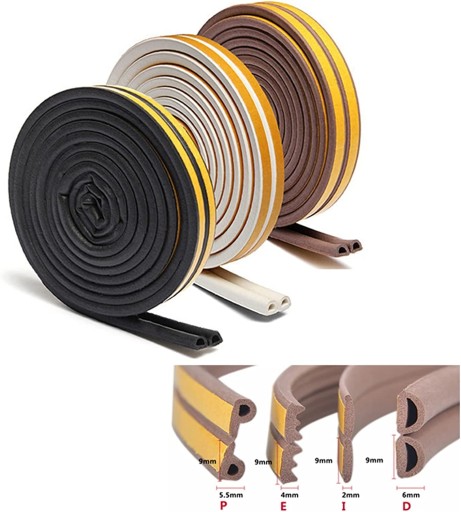 ✅ Najwyższej jakości samoklejąca miękka elastyczna uszczelka - pasująca do profili okiennych i drzwiowych - TYP E 4 x 9 mm