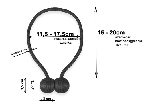 - Szerokość sznurka min-max po rozciągnięciu: 11,5-17,5 cm (+/-1%)