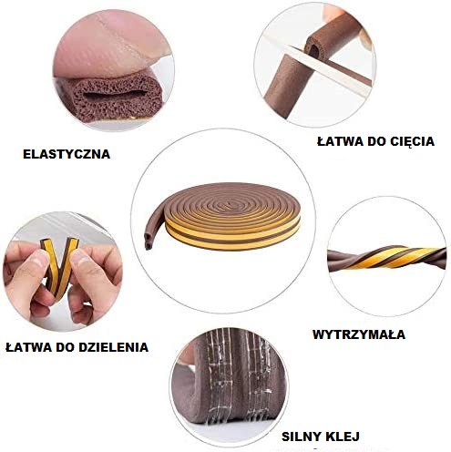 ✅ Najwyższej jakości samoklejąca miękka elastyczna uszczelka - pasująca do profili okiennych i drzwiowych - TYP D 6 x 9 mm