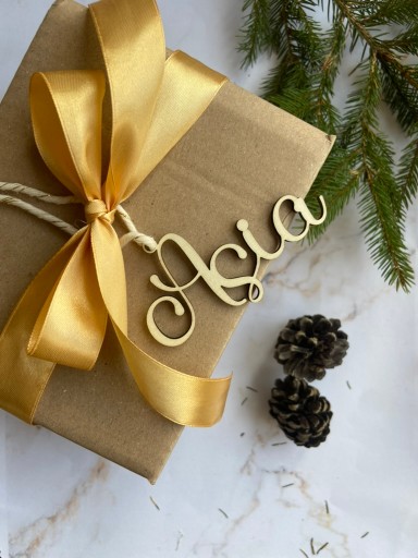 Zawieszka z wybranym przez Ciebie imienie, wykonana z brzozowej sklejki, ma 6 mm grubości. Całkowita wysokość napisu wynosi 5 cm, długość zależna jest od wybranego imienia. Naturalna, personalizowana ozdoba stołu, która może posłużyć także jako zawieszka do prezentu lub być zawieszona na choince.