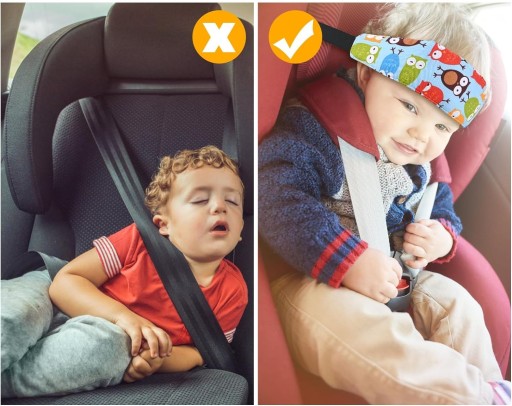 - Opaska świetnie spisuje się podczas długich podróży samochodem, dzięki niej głowa dziecka nie opadnie bezwiednie podczas podróży w foteliku.